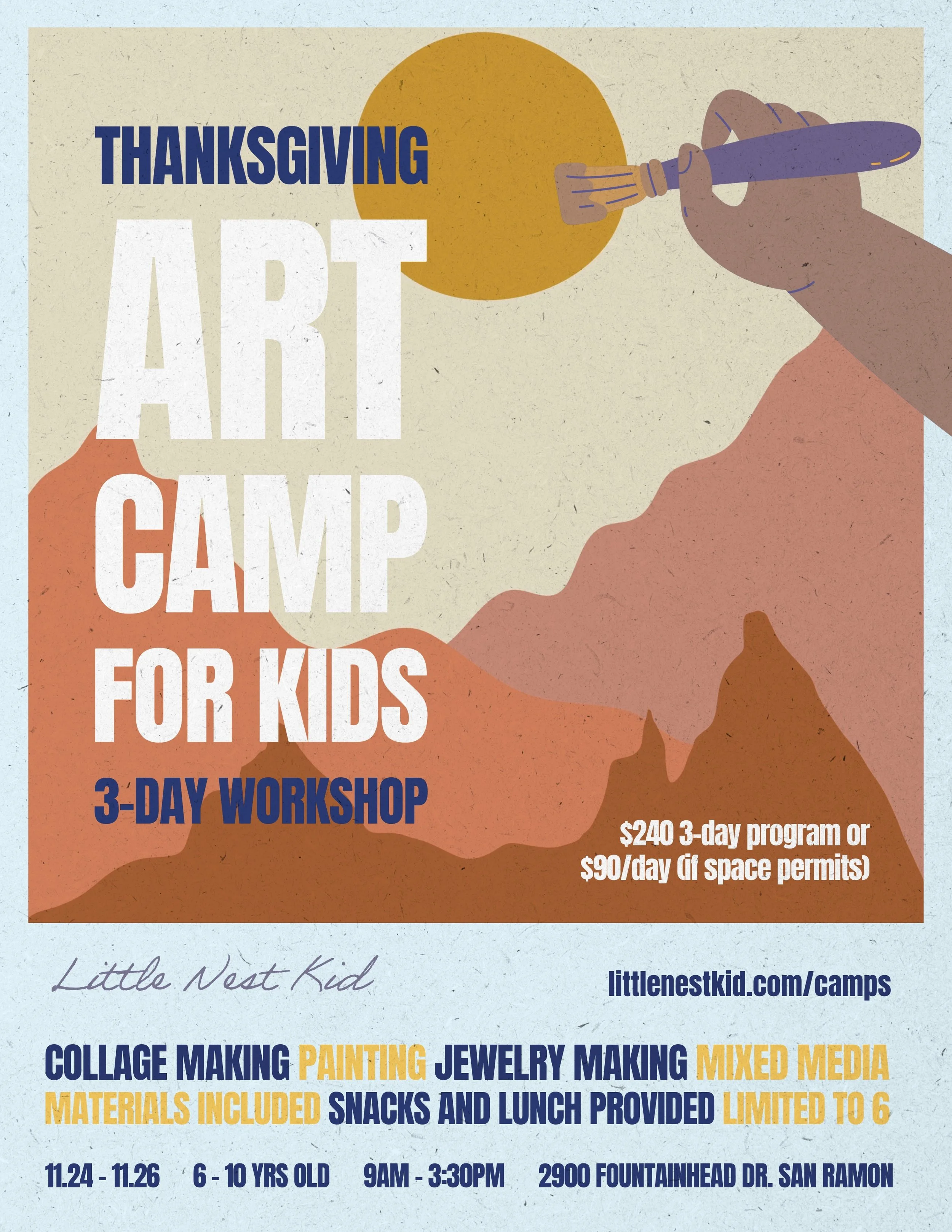 Designed for ages 6–10 years old, our Art Camp blends art, nature, and friendship in a small, supportive group. Children will paint, craft, and build projects inspired by autumn colors, gratitude, and harvest celebrations. It’s the perfect way to spend Thanksgiving break — learning, creating, and making a special piece